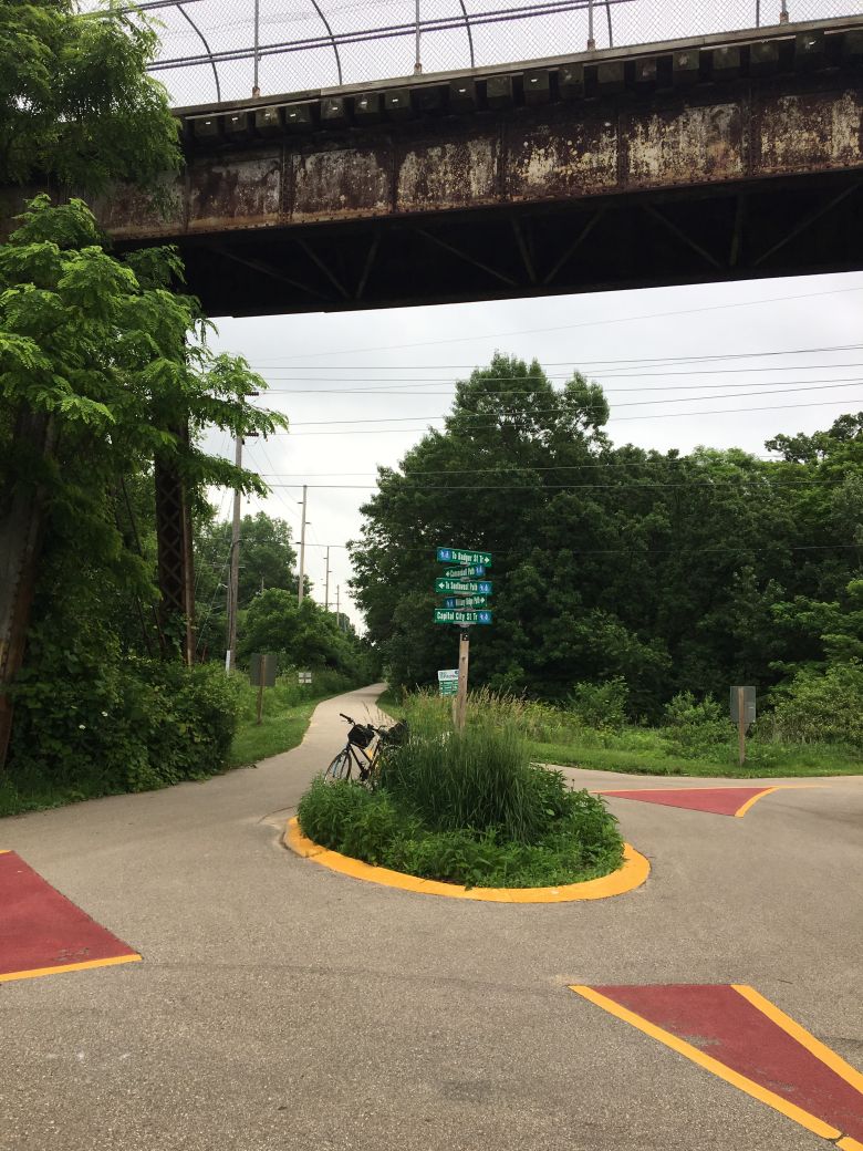 Back on the Cannonball Path again. There was a sign in this area that said "Bike Path Solar Lighting Test Area" and referred to Public Works @fitchburg.com. I was curious about that and looked it up later online. I believe that this part of the path is lit at night from lights charged with solar panels but I was never here at night and can not verify that.